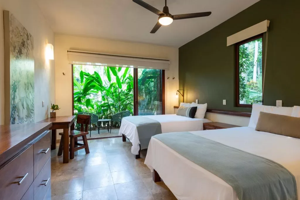 Two double bed suites available. Choose from ground level greenery oasis or second story ocean view in the distance.