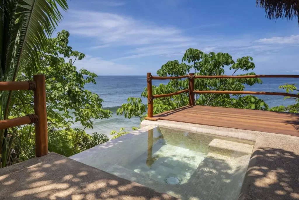 Indoor and outdoor shower plus a jacuzzi overlooking the ocean